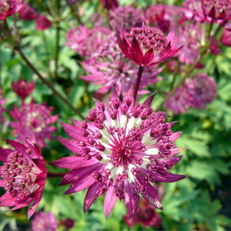 Соцветия имеют яркие, розовые или пурпурные оттенки и собраны в зонтичные группы, что придает растению особую элегантность. Цветение в июле-августе. Зонтиковидные соцветия своим внешним видом напоминают звезды. Растение является медоносом, поэтому оно привлекает на садовый участок пчел.
