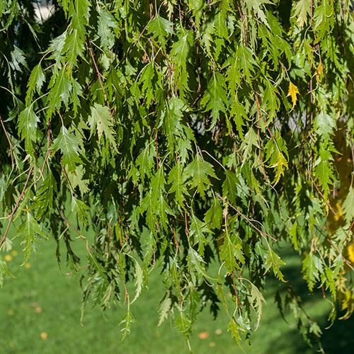Крона дерева густая и широкоокруглая, ветви тонкие и свисающие, что придаёт растению особую элегантность. Листья - главное украшение этого сорта, они глубоко рассечённые, ажурные, ярко-зелёного цвета, осенью приобретают жёлтый оттенок. Ветви берёзы придают кроне лёгкость, а зелень листьев создаёт ощущение кружевного узора.