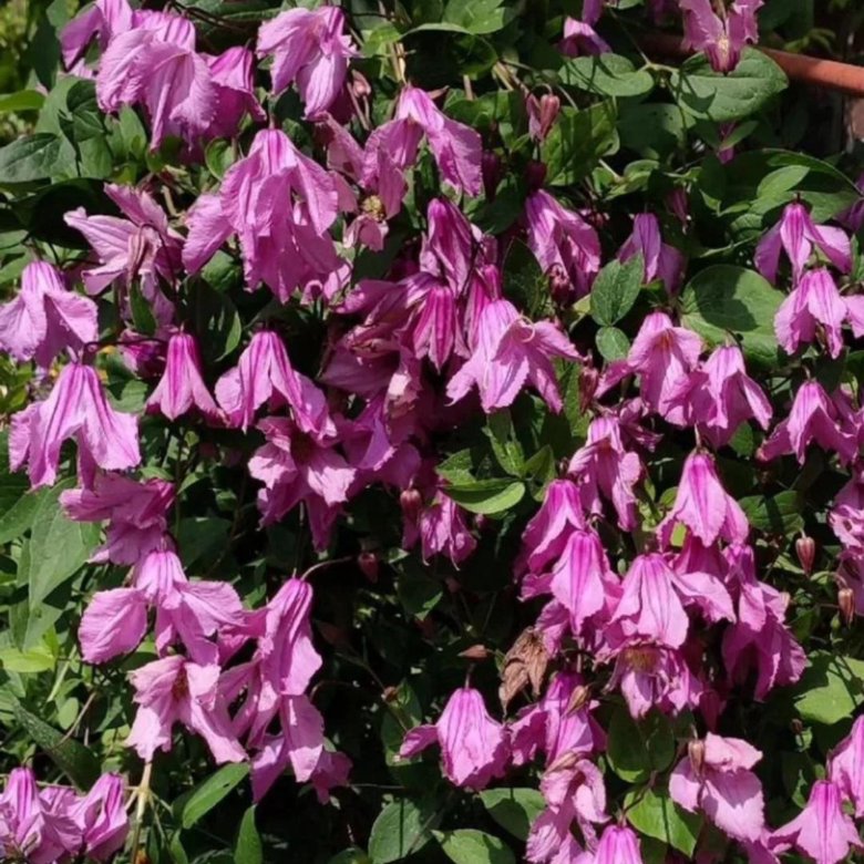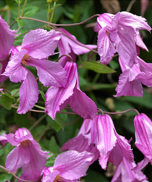 Красивый и эффектный клематис с очень обильным и продолжительным цветением. Клематис «Аленушка» придутся по душе как начинающим садоводам, так и более опытным. Если вы захотите, чтобы лиана была приподнятой, установите опору. Когда опоры нет, клематис стелется по земле и довольно затейливо переплетается с другими растениями, поэтому их нередко высаживают для покрытия почвы. В высоту эта кустарниковая лиана может достигать 1,5-2 м. Побеги приподнятые, не цепляющиеся за опоры, поэтому ему требуется подвязка к опоре. Цветки оригинальные, светло-розово-лиловые, колокольчатые, 4-5-лепестковые, до 7,0 см в диаметре. Цветение обильное и продолжительное, с конца июня по сентябрь. Обрезка 3 группа (сильная).