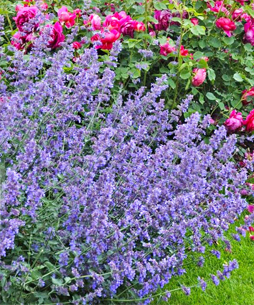 Котовник Фассена пользуется большой популярностью благодаря своей аристократичной красоте. Нежная серо-зеленая листва этого многолетника добавляет саду изысканности, а яркие цветки, образующие целое облако, создают романтическую атмосферу. Именно этот вид наиболее эффектно смотрится в посадке с розами, причем сине-фиолетовые оттенки образуют гармоничное сочетание с любым цветом. Быстро разрастается, поэтому в союзе с первоцветами или декоративными луками скроет их увядшую листву.