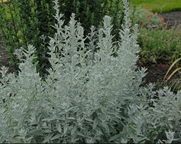 Неприхотливый, травянистый и очень ароматный многолетник высотой 60-70 см. Листья очень декоративные за счет белого опушения и выглядят как будто покрытыми инеем. Серебристая листва сохраняет декоративность в течение всего вегетативного сезона. Цветет в июле и августе мелкими белыми цветками корзинками, собранными в метельчатые соцветия.