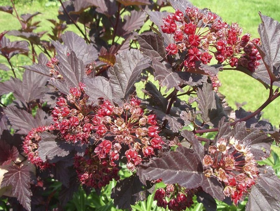 Пузыреплодник калинолистный Шух– это сорт чешской селекции. Декоративный, быстрорастущий кустарник, привлекателен благодаря своей красивой винно-красной листве и розовым цветкам. Растет до 2 м в высоту и в ширину. Годовой прирост при правильном уходе – 30 см. Крона плотная и округлой формы. Если побеги, формирующие ее, не обрезать, они будут расти прямо, а потом ниспадать красивыми каскадами. Молодые образцы окрашены в красный тон, а зрелые – в темно-коричневый.