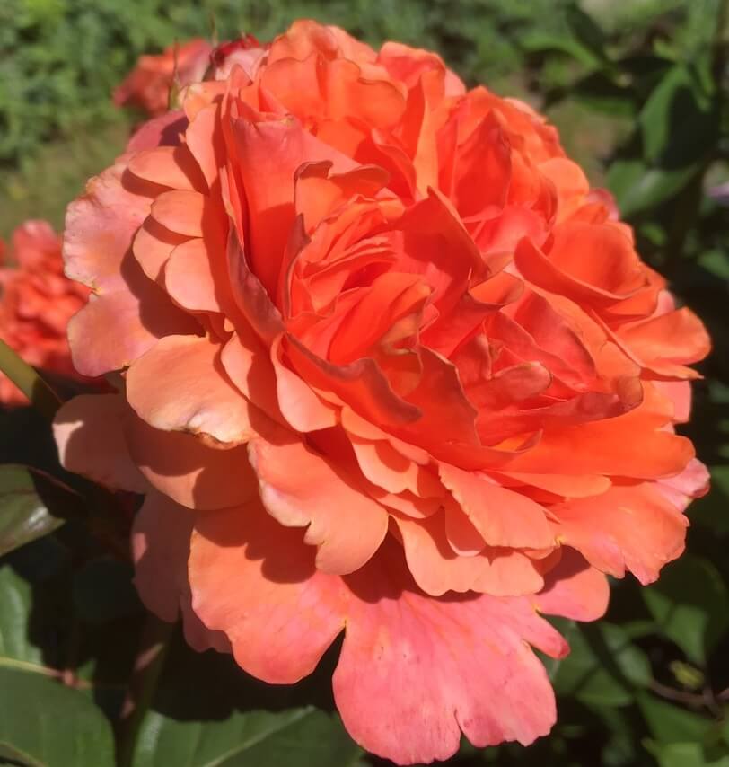 Цветок этого растения обладает насыщенным оранжевым окрасом, который становится еще более ярким и теплым у сердцевины. Бутоны имеют округлую форму и медленно распускаются, превращаясь в чашевидные, крупные цветы диаметром 10-12 см. Насыщенность цвета цветов делает их яркими и привлекательными. Аромат розы напоминает розовое масло, добавляя дополнительную изысканность. Цветение продолжительное, начиная с начала лета и заканчивая в сентябре.